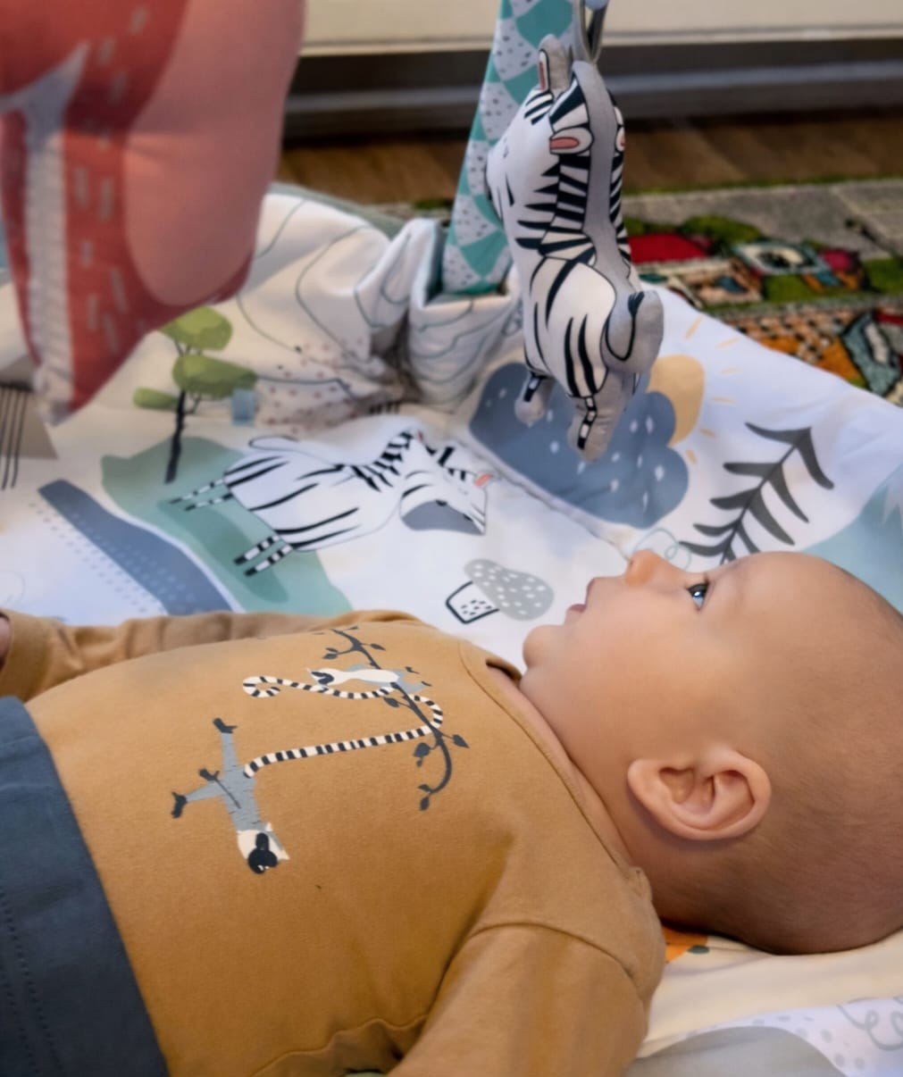 Interaktywna zabawa stymuluje zmysły i wspiera rozwój poznawczy. Każdy uśmiech, każda reakcja na dźwięk czy dotyk wzmacnia sieć neuronalną i uczy dziecko, że świat jest bezpieczny i przewidywalny.